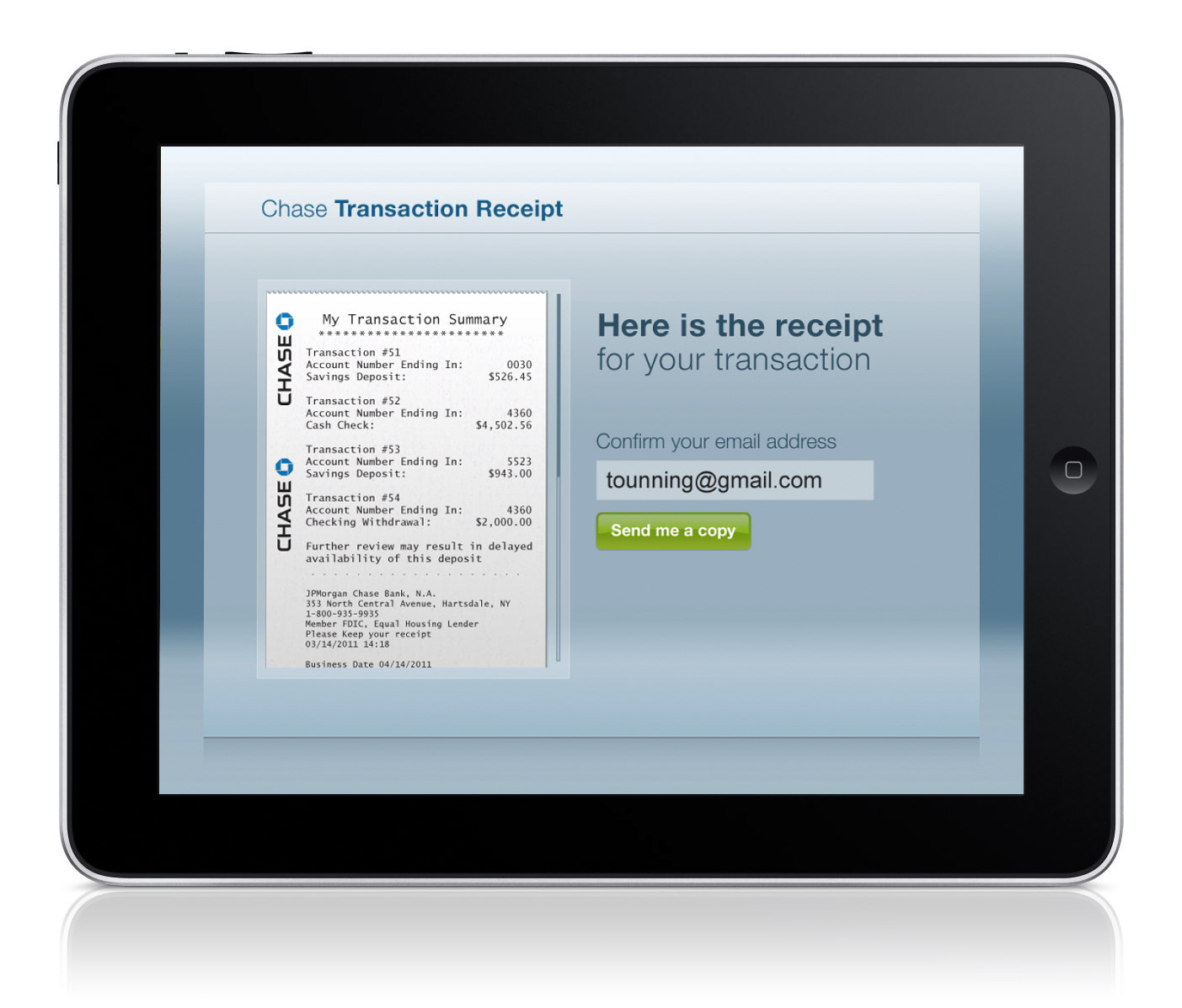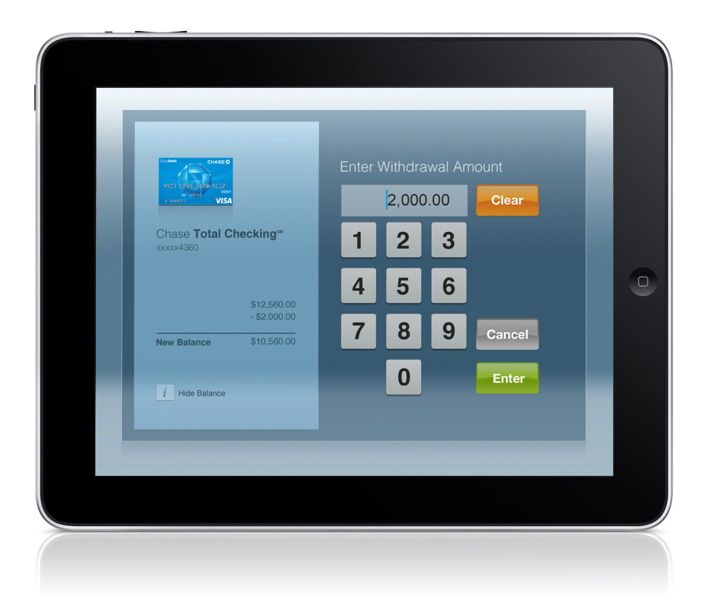 Modified existing Teller User Interface screens to incorporate new Chase Corporate online interface standards. Redesigned screen flow based on a 10″ tablet device.